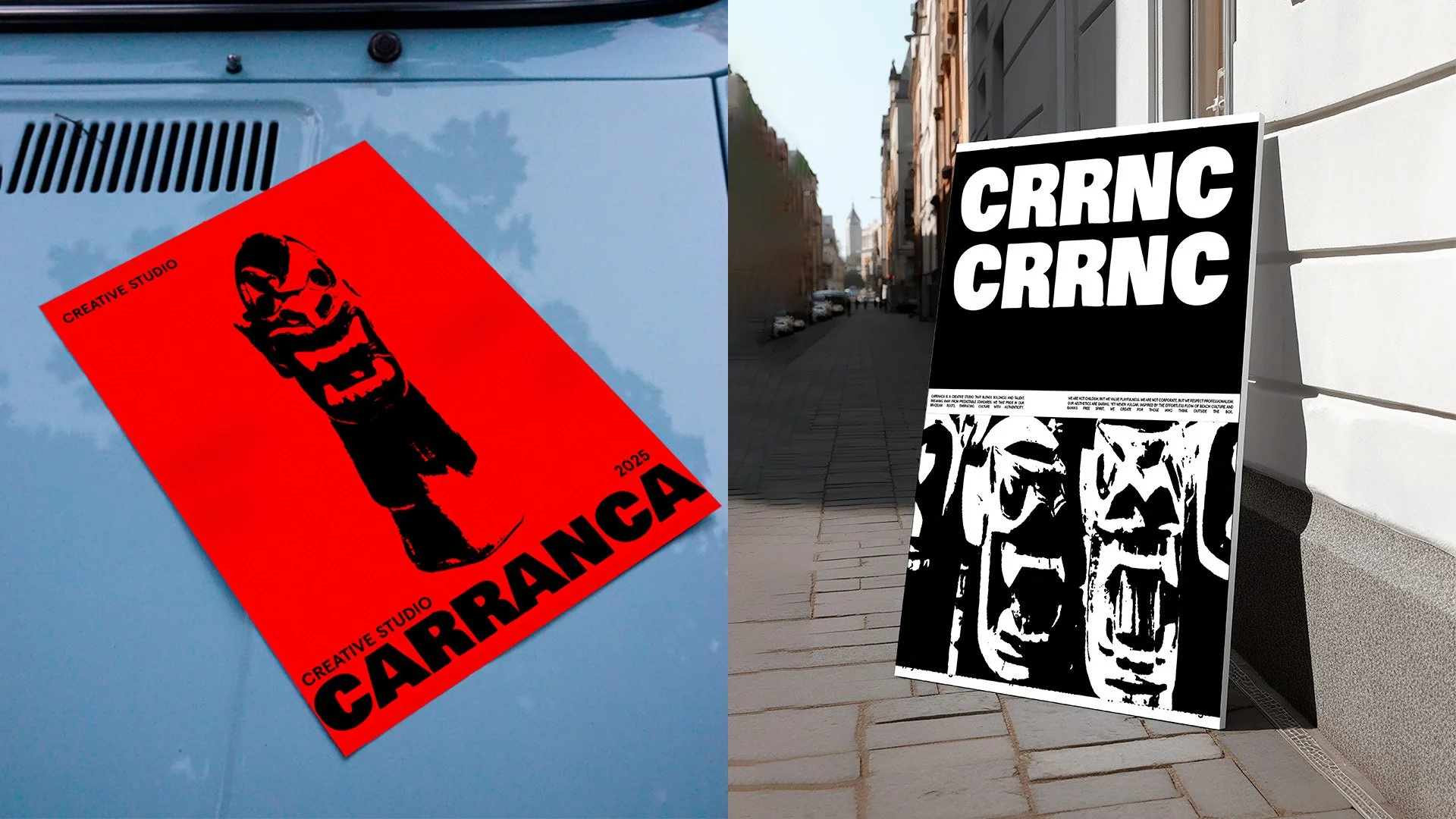 O conceito visual reflete um espírito livre e “fora de casa”, trazendo referências da cultura surf e do lifestyle praiano da Bahia, sem perder a solidez necessária para se posicionar no mercado. A linguagem visual da Carranca é impactante, mas sem vulgaridade — um convite para projetos que desafiam o convencional e valorizam a criatividade sem amarras.